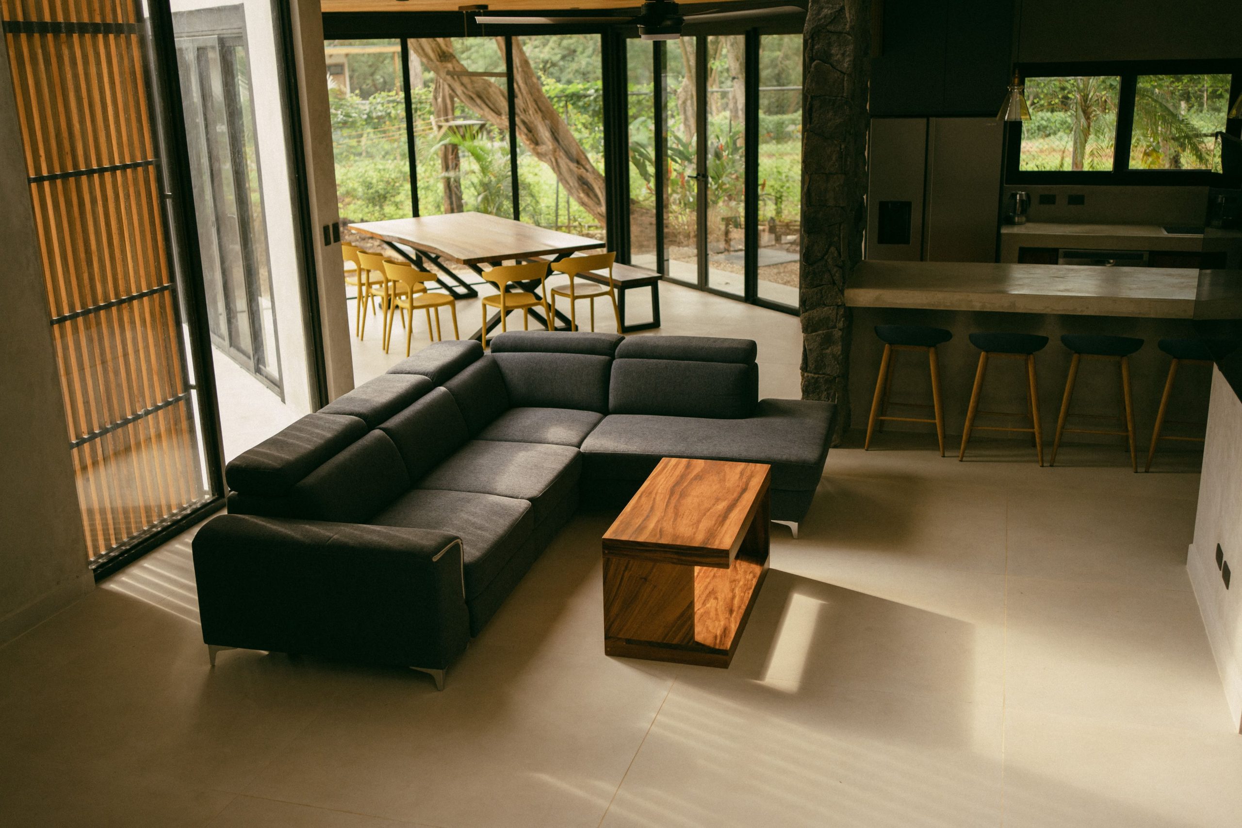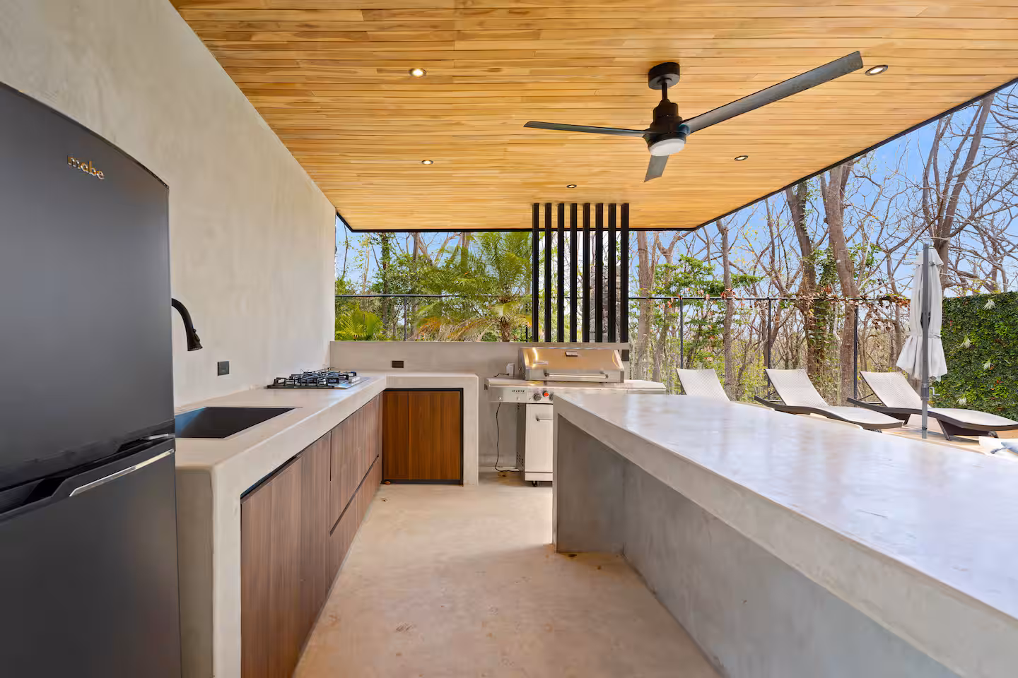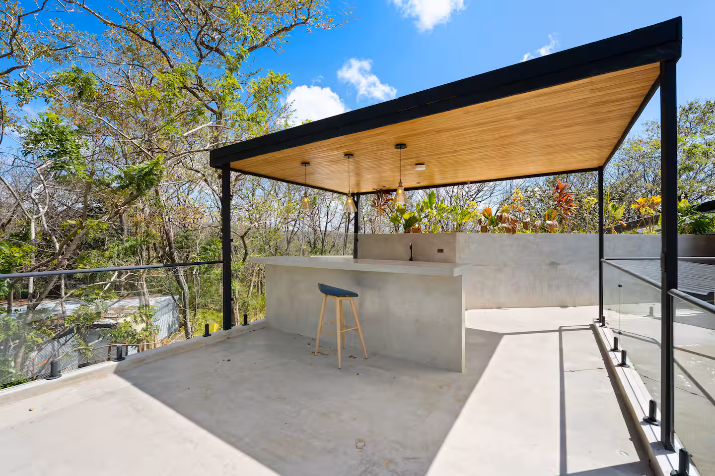 The backyard is a private outdoor oasis perfect for relaxation and entertaining. With lush landscaping, comfortable seating, and a shaded lounge area, it invites you to enjoy Costa Rica’s tropical climate. Whether soaking up the sun or dining alfresco, this space enhances your villa experience beautifully.