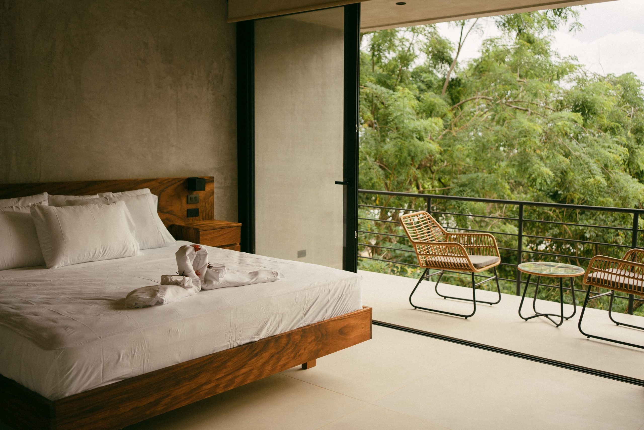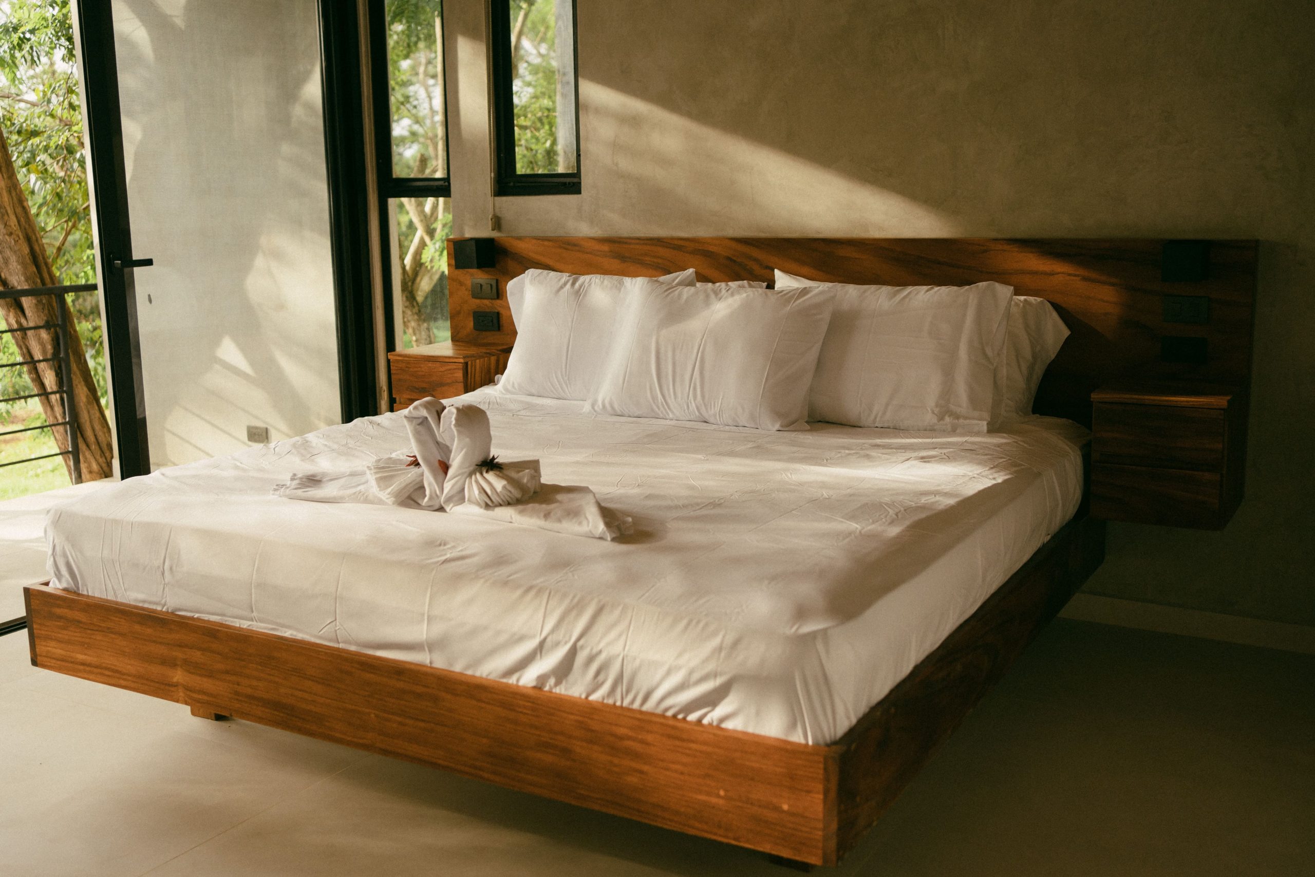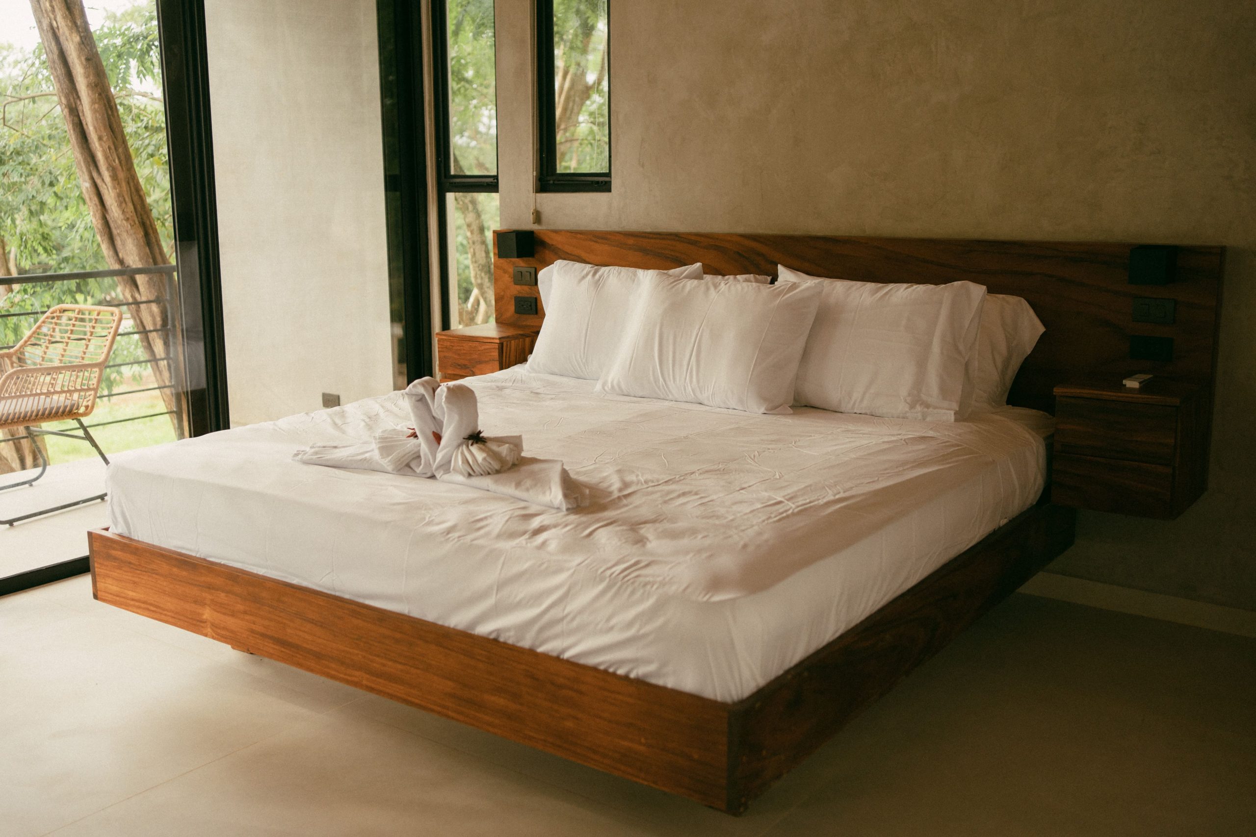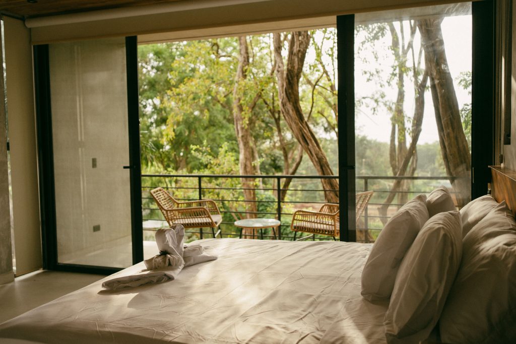 The bedroom is a peaceful retreat designed for ultimate comfort and relaxation. Featuring plush bedding, soft lighting, and tasteful décor, it creates a restful atmosphere. Large windows invite natural light and scenic views, making it the perfect sanctuary to unwind after a day of adventure in Playa Grande.