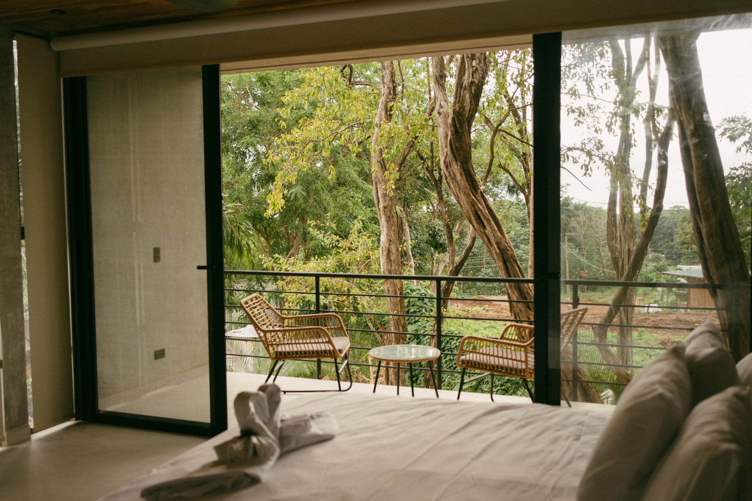 The bedroom is a peaceful retreat designed for ultimate comfort and relaxation. Featuring plush bedding, soft lighting, and tasteful décor, it creates a restful atmosphere. Large windows invite natural light and scenic views, making it the perfect sanctuary to unwind after a day of adventure in Playa Grande.