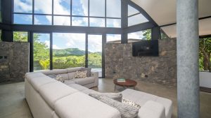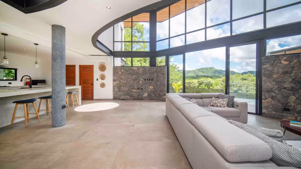 Specious space with double high ceilings and massive windows facing the mountains creating a beautiful panoramic view.