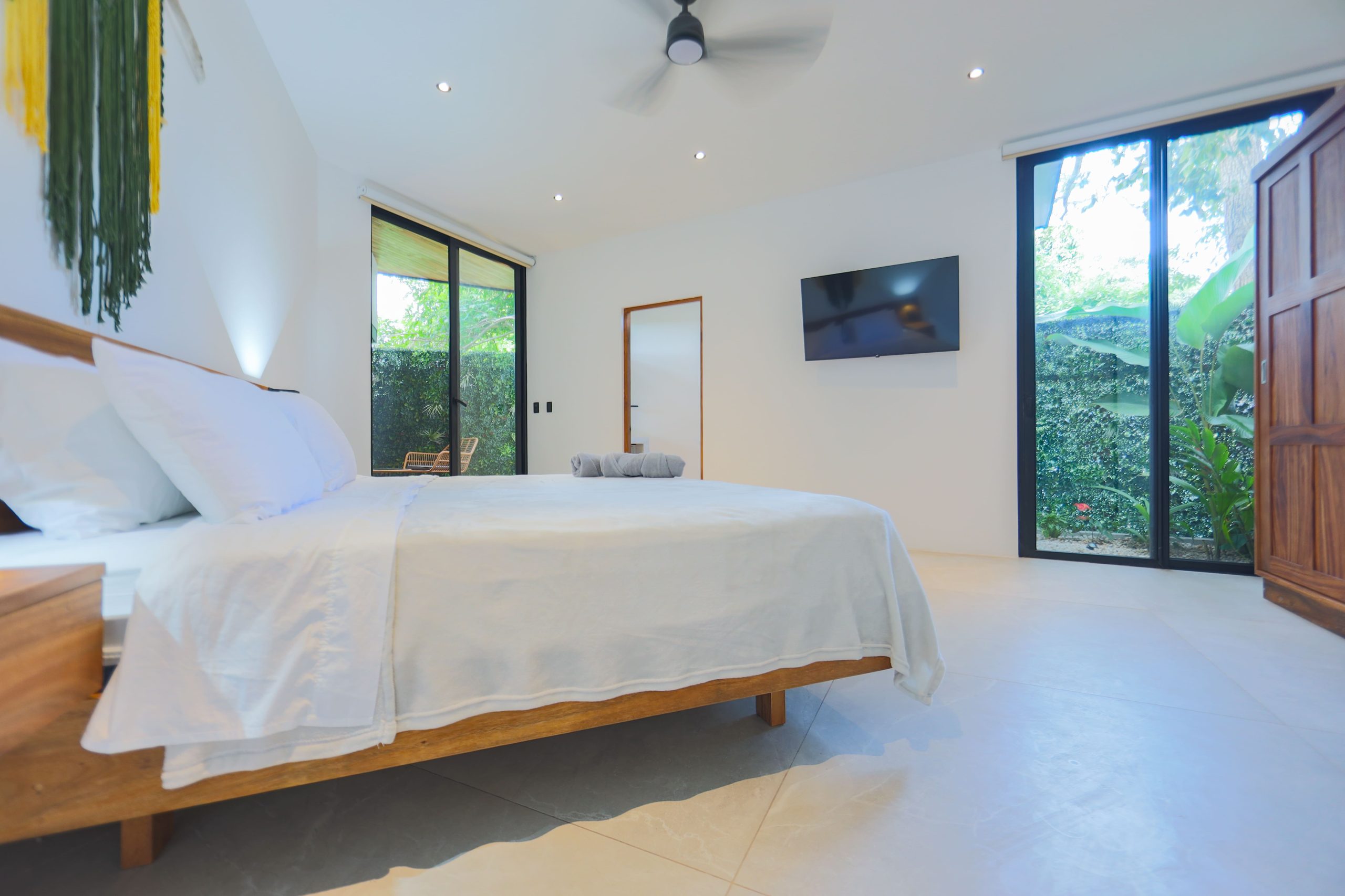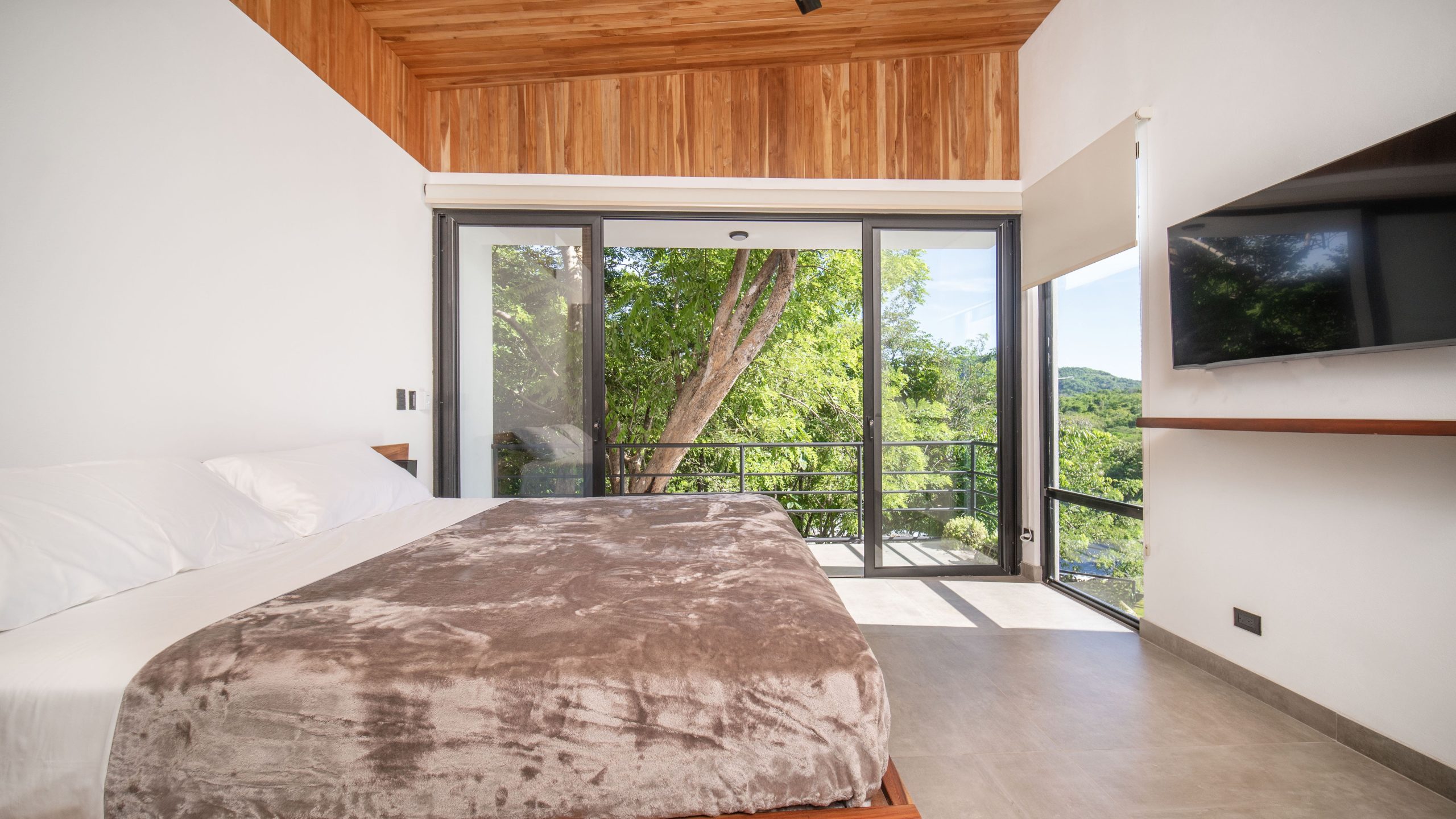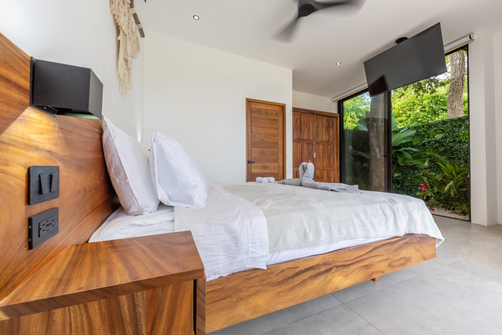The bedrooms are designed to be as pleasant as possible, all have super comfortable beds (4 kings and one queen) ,6 USB/Type C charging ports (on each room), AC, fan, ensuite bathroom, private balcony and TV with all the premium on demand services such as HBO max, ESPN’s, Disney and more.