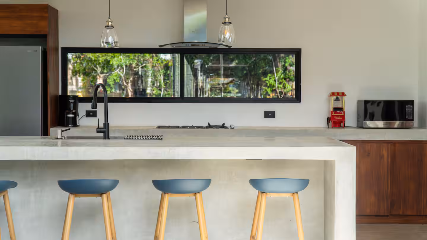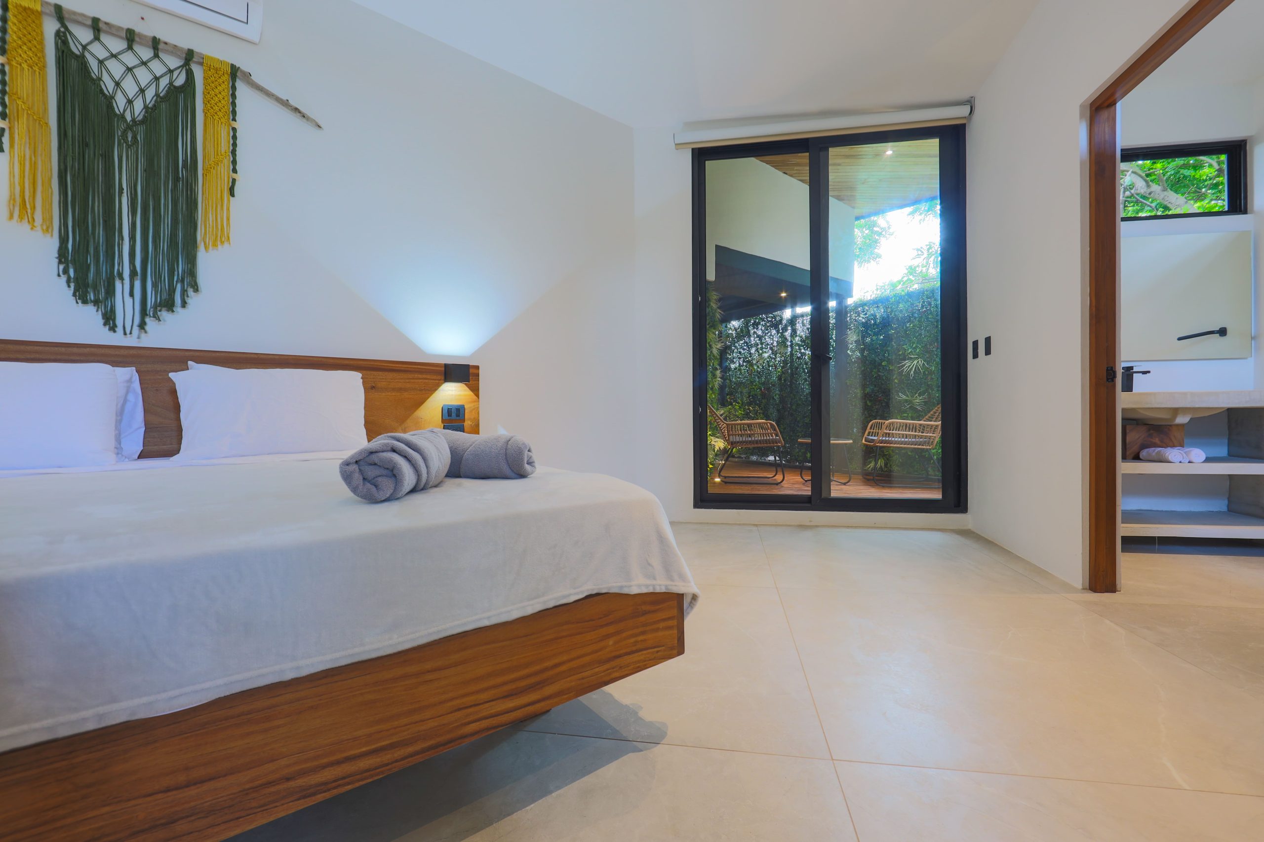 The bedrooms are designed to be as pleasant as possible, all have super comfortable beds (4 kings and one queen) ,6 USB/Type C charging ports (on each room), AC, fan, ensuite bathroom, private balcony and TV with all the premium on demand services such as HBO max, ESPN’s, Disney and more.