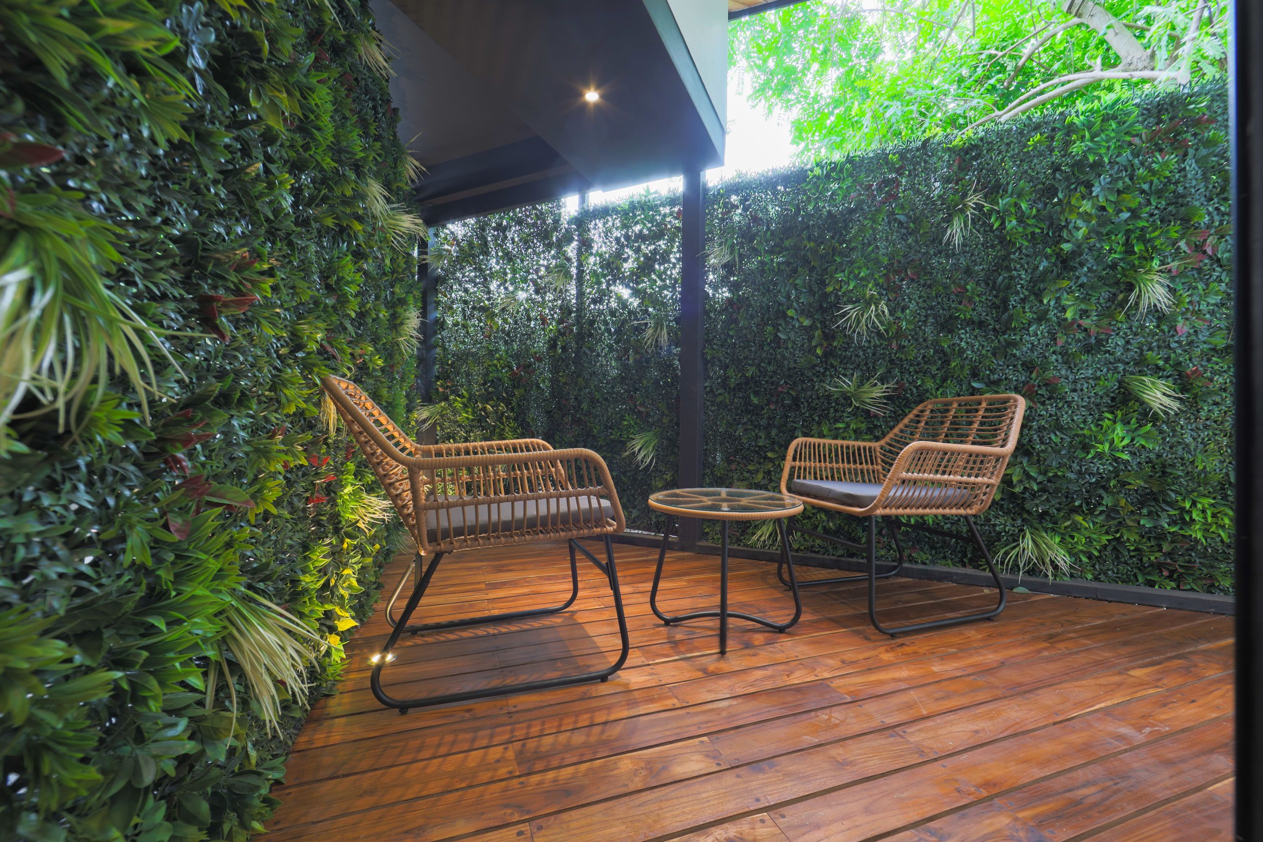 - Shaded lounge area