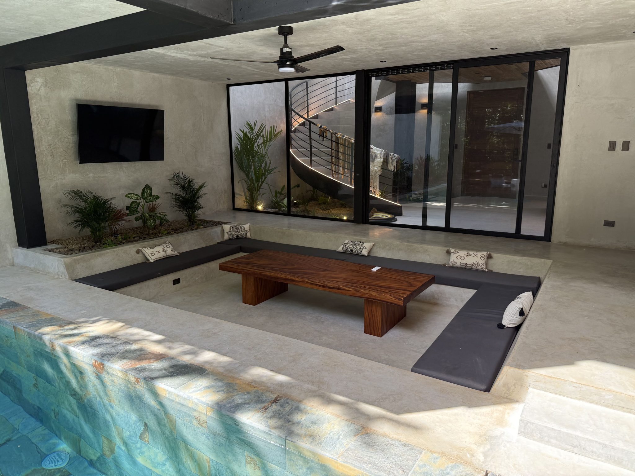 - Spacious poolside seating area