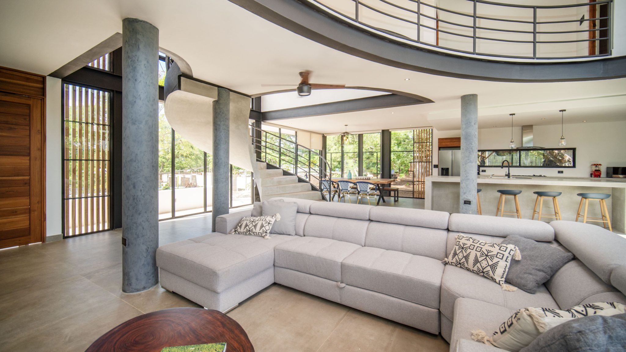 Specious space with double high ceilings and massive windows facing the mountains creating a beautiful panoramic view.